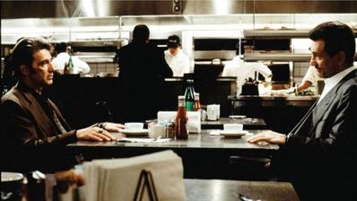 "Heat" suit un détective de la police de Los Angeles (Pacino) pendant près de trois heures tandis qu'il pourchasse avec son équipe une bande de voleurs menés par le personnage de De Niro. Outre les scènes d'actions, le moment clé du film survient lorsque les deux protagonistes se retrouvent à dîner, offrant une scène culte où les deux légendes du cinéma se retrouvent pour la première fois ensemble à l'écran. Ils avaient joué dans "Le Parrain, 2ème partie" 21 ans plus tôt, mais dans des scènes différentes. Pacino, 76 ans, a révélé qu'il avait interprété ce détective abrasif, l'un des rôles majeurs de sa carrière, comme un cocaïnomane "qui sniffe" régulièrement, même si le réalisateur Michael Mann ne le montre jamais à l'écran. "J'ai toujours eu envie de le dire, pour qu'on comprenne son comportement", insiste l'acteur.