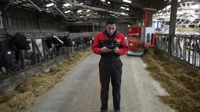 Un robot distribue la nourriture aux vaches, un autre change la paille et deux robots s'occupent de la traite: Antoine Boixière, 27 ans, adore les robots qui le soulagent au quotidien sur l'exploitation laitière de 140 hectares des Côtes-d'Armor qu'il partage depuis six ans avec son père.