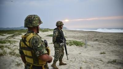 Ils servent aussi "à repérer les sentiers" empruntés par les voleurs, indique un des 20 militaires de la Marine mexicaine déployés sur cette plage, longue de 18 km, près de la ville de San Pedro Huamelula.