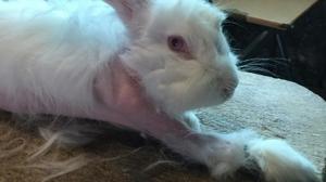 "Pour favoriser la tombée des poils, nos lapins mangent des granulés de mimosa d'Afrique, mis au point par l'Inra. On le peigne et le poil vient tout seul. Les cris, il y a en quelques-uns, mais ce n'est pas général", a-t-il dit.
