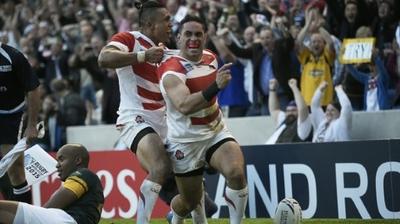 Le Japon a créé la sensation samedi à Brighton lors du Mondial-2015 en battant 34 à 32 l'Afrique du Sud, double championne du monde, grâce à un essai dans le temps additionnel après une fin de match époustouflante.