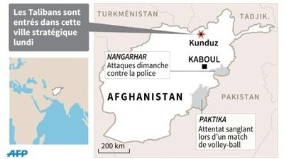 L'armée afghane, épaulée par l'armée de l'air américaine, se battait dans Kunduz mardi pour tenter de déloger les rebelles talibans de ce carrefour stratégique du nord dont les insurgés se sont emparés la veille à la faveur d'un assaut éclair.