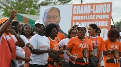 "Ici, le match est fini, on ne parle plus de campagne, on parle de fête car ADO a gagné dès le premier tour", renchérit M. Djaha, casquette vissée sur la tête.
