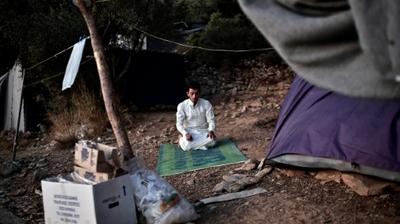 A peine le soleil levé sur la mer à Samos, Naween Rahimi, un Afghan de Kaboul, surgit d'une tente et se jette sur le visage les dernières gouttes d'eau d'une bouteille.
