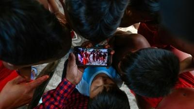 Pour voir des signes du monde industrialisé du XXIe siècle, pas besoin de regarder vers le ciel. Un villageois porte un téléphone attaché à son pagne, même si les réseaux mobiles ne couvrent absolument pas la zone: il lui sert à prendre des photos.
