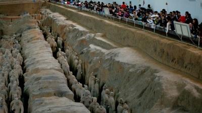 Les 8.000 guerriers en terre cuite mis au jour à Xian, dans le nord de la Chine, à partir de 1974, sont les gardiens de la tombe du premier empereur Qin, mort en 210 avant notre ère après avoir unifié le pays.