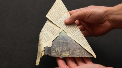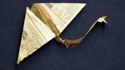 Ou comme cet autre avion plié dans un tract appelant à manifester contre la guerre au Vietnam.