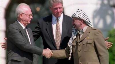 En 1993, il décide de signer les accords d'Oslo qui dessinèrent un temps la possibilité d'un Etat palestinien. Avec sa poignée de main historique à la Maison Blanche avec le Premier ministre israélien Yitzhak Rabin, il met fin à 27 ans d'exil et prend la tête de l'Autorité palestinienne.