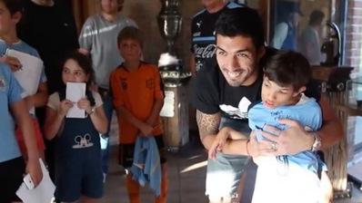Suarez lui a offert son maillot dédicacé avec lequel il a joué contre le Chili, a passé du temps avec lui et a même posé pour quelques photos.