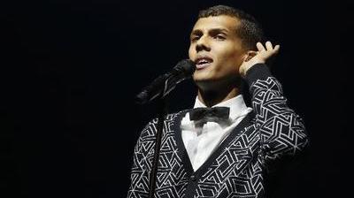 Pour "Papaoutai", il change de registre et débute la chanson totalement immobile, telle sa statue de cire qu'il vient d'inaugurer musée Grévin, à Paris.