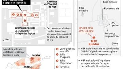 Si MSF a récemment admis qu'une "vingtaine de talibans" étaient traités dans son hôpital, l'ONG affirme que ses équipes avaient transmis les coordonnées GPS de l'hôpital aux armées afghane et américaine avant le raid.