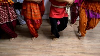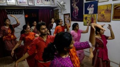 En rythme, synchrones, de jeunes femmes et hommes martèlent de leurs pieds nus le sol d'un petit studio de New Delhi, approfondissant inlassablement des mouvements de danses classiques indiennes ancrées dans la mythologie hindoue.