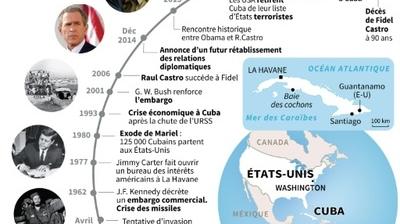 Malgré la réouverture des ambassades à l'été 2015 et la visite sans précédent de Barack Obama en mars 2016, les relations entre les Etats-Unis et l'île distante de seulement 150 kilomètres sont loin d'être normalisées. L'embargo économique, imposé depuis 1962 par les Américains, est maintenu et le Congrès à majorité républicaine s'oppose résolument à sa levée.