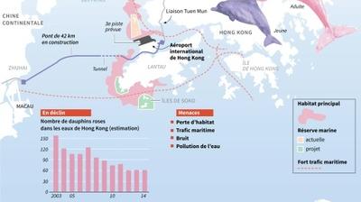 Hong Kong veut agrandir son aéroport international, un nouveau pont géant est en construction: l'effectif déjà maigrelet des dauphins roses emblématiques des eaux de l'ancienne colonie britannique est menacé de disparition.