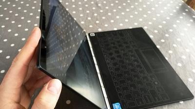 Il a l’apparence d’un ordinateur portable extrêmement fin (9,6 mm refermé) et élégant, avec une charnière en métal étonnamment solide. L'écran de 10,1" (1920 x 1080 pixels) est tactile, mais ne peut pas être détaché.