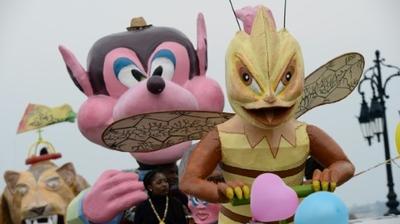 "Deux mille cinq cents carnavaliers passent six mois à créer une quarantaine de chars, en s’inspirant, avec humour, de l’actualité, de personnalités politiques et de célébrités", précise l'Unesco. A la fin du carnaval, un roi de papier mâché est jugé et brûlé dans le port, selon le communiqué.