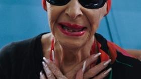 Lunettes sombres, pantalon rouge et foulard de la même couleur sur la tête, Alicia, surnommée la "prima ballerina assoluta", reste coquette malgré son grand âge, portant rouge à lèvres rose et ongles démesurément longs et vernis.