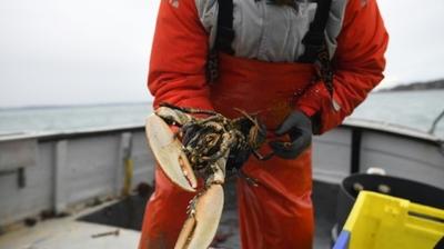 Pendant près de six heures, le pêcheur enchaîne quasi machinalement son rituel: repérer les bouées reliées par une corde aux casiers à homards, les hisser à bord du bateau à l'aide d'une gaffe, mesurer la taille du homard pris au piège, attacher ses pinces pour éviter qu'il ne se batte avec ses comparses, remettre un grondin en guise d'appât, et, enfin, rebasculer les casiers dans les fonds rocheux...