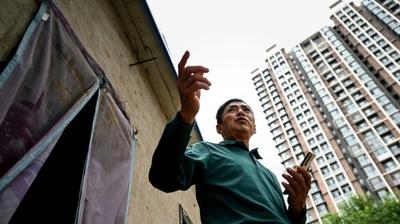 À l'ombre d'un immeuble d'appartements cossus, Wang Yufu, 70 ans, somnole dans la chaleur de l'été.