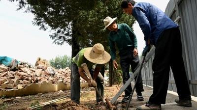 L'homme dirige une équipe d'ouvriers venus comme lui de province et qui embellissent les espaces verts de Shangdi.