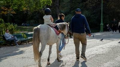 "Ma petite-fille Luise ne jure que par les poneys, on vient toutes les semaines. Qu'on laisse ces pauvres bêtes se promener", tranche la Parisienne Lina Bodart, ajustant le casque de sécurité de la fillette avant une balade.