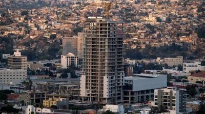 Des immeubles neufs sortent de terre à Tijuana, avec des panneaux en anglais et des prix en dollars.