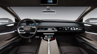 À bord, Audi a installé des écrans un peu partout. Ils sont ainsi trois, tactiles, face aux passagers avant. Au pied de la console centrale, se trouve un 4e écran pour la climatisation et le multimédia. Fin et flexible, il utilise la technologie OLED à diodes électroluminescentes organiques. À l'arrière aussi les écrans sont présents. Un écran OLED central sert aux réglages et deux tablettes OLED trouvent place au dos des sièges avant. Et puis, tous les sièges s'adaptent directement aux passagers grâce à l'identification de leur smartphone. Un appareil qui peut se charger par... induction.