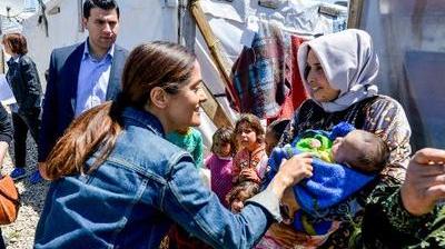 Salma Hayek a profité de sa visite pour se rendre auprès d'enfants syriens réfugiés au Liban, qui abrite 1,2 réfugiés du pays voisin en guerre, pour soutenir une campagne de collecte de fonds avec l'Unicef.