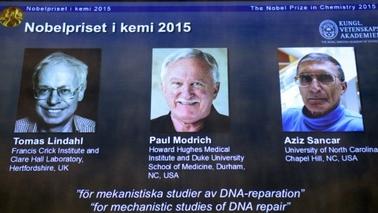Le prix Nobel de chimie a été décerné mercredi à un Suédois, un Américain et un Turco-Américain dont les travaux sur la réparation d'un ADN dégradé servent à la recherche contre le cancer.