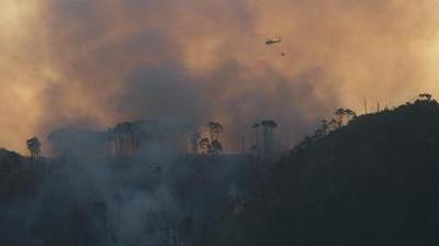 Le feu court sur l'épine dorsale montagneuse de la péninsule qui s'étend de la ville du Cap jusqu'au célèbre cap de Bonne Espérance.