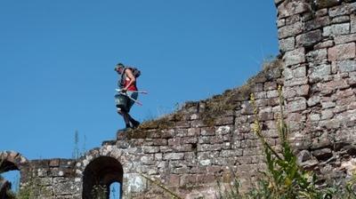 Pourtant au début des années 2000, "leur état était assez alarmant: en dehors des chemins d'accès, entretenus par le Club Vosgien, vous étiez dans des jungles, avec des vestiges très peu visibles qui émergeaient de temps en temps des ronces et des orties", raconte Mathias Heissler, architecte du patrimoine au conseil départemental du Bas-Rhin.
