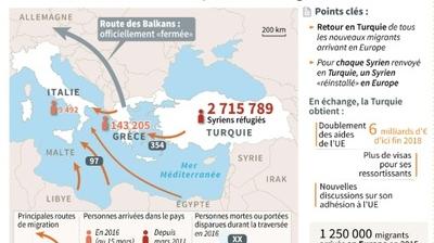 L'UE et la Turquie ont conclu un accord inédit et controversé, censé mettre un coup d'arrêt à l'afflux de migrants vers l'Europe, mais dont la mise en oeuvre promet d'être d'une grande complexité.