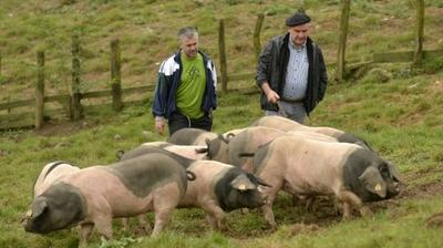Robe tachetée de noir, tête et cul noirs, le porc de race basque kintoa, menacé de disparition en 1981, est en pleine renaissance, grâce à l'opiniâtreté de quelques éleveurs de la vallée pyrénéenne des Aldudes, Pierre Oteiza en tête.
