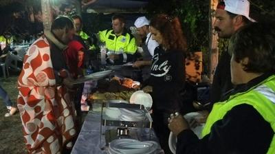Le repas est offert par la cellule d'urgence de la Fédération des chefs italiens, qui intervient bénévolement pour venir en aide aux populations touchées par des catastrophes naturelles.