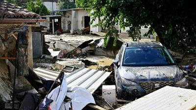 "La porte d'entrée est sortie de ses gonds et j'ai été projeté contre le mur. J'ai réussi à monter sur un placard et là j'ai attendu ma mort", raconte-t-il, alors que l'Italie est sous le choc de la catastrophe qui a fait une dizaine de morts.