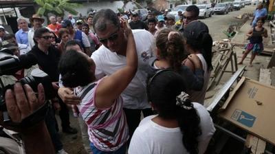 "C'est très dur, mais nous nous en sortons", a affirmé le chef de l'Etat lors de ce bref entretien. "Je reste là deux, trois heures pour démarrer cette première UPC, dit-il. Mais il va y en avoir dans toute la province" de Manabi, la plus affectée par le tremblement de terre.