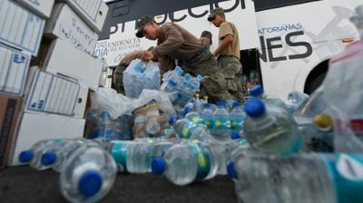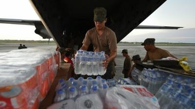 "Dans la seule journée d'aujourd'hui, nous avons reçu environ 60 tonnes d'eau, de vivres et de vêtements", précise le capitaine Marcelo Apolo de la Marine équatorienne.