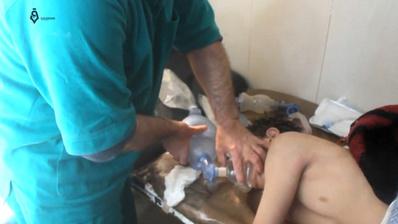 Une vidéo diffusée par des militants a montré un petit garçon respirant avec difficulté, pouvant à peine ouvrir les yeux et avec de la mousse sortir de sa bouche.