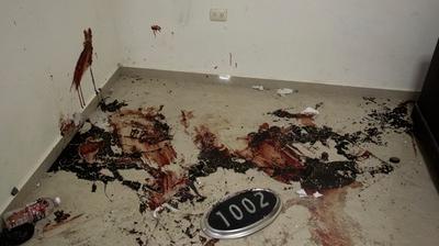 La paisible façade de la demeure blanche, en partie dissimulée par le feuillage des arbres, contraste avec le chaos qui règne à l'intérieur, maculé de traces de sang et d'impacts de balles. Des matelas ont été retournés, un frigo éventré et partout des objets jonchent le sol.