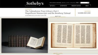 Le Talmud constituait la pièce principale de la vente de la bibliothèque Valmadonna, la collection la plus éminente de livres et de manuscrits hébreux dans le monde. La vente a rapporté au total 14,9 millions de dollars, un record pour des enchères d'objets rituels de la religion juive.