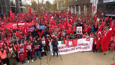 Des centaines de drapeaux turcs étaient brandis ainsi que des banderoles contre le terrorisme. Du haut d'un bus à deux étages, différents militants ont pris la parole afin de dénoncer les manifestations de la communauté kurde en Europe et notamment en Belgique. "Le PKK est reconnu comme organisation terroriste tant aux Etats-Unis qu'en Europe. Pourtant nous constatons que, pendant des manifestations soi-disant organisées par des associations culturelles, les dirigeants du PKK sont représentés sur des banderoles", explique un porte-parole de la communauté turque.