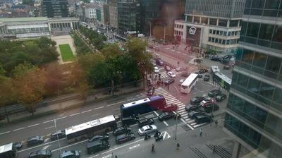 Les embarras de circulation sont importants dans le centre de Bruxelles. Les tunnels de la petite ceinture ont été temporairement fermés mains sont maintenant rouverts. La circulation est entièrement bloquée sur la rue Belliard à cause de la présence des taxis au rond-point Schuman. La gare du Midi a également été assaillie par les taxis et la circulation aux abords de la gare est très difficile.