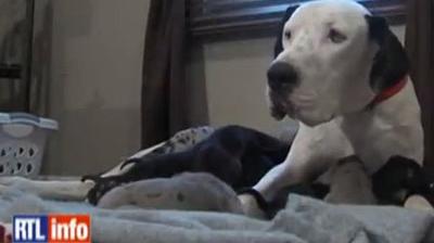 Grosse surprise pour ces propriétaires d'un dogue allemand dans l'état de la Pennsylvanie aux Etats-Unis, leur chienne a mis au monde un nombre important de chiots: 19 petits dogues allemands ont vu le jour, tous plus mignons les uns que les autres alors qu'une portée normale se situe aux alentours de 7 à 10 chiots.