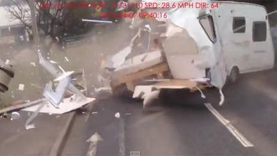 Lors d’un accident dramatique, une caravane a complètement été détruite alors qu’elle était remorquée par un conducteur. L’automobiliste a perdu le contrôle en essayant de doubler un camion.
