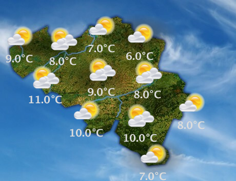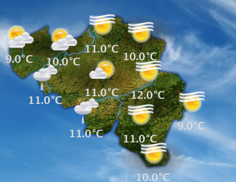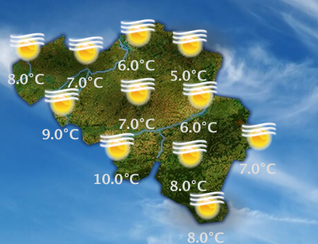 En début d'après-midi, nous prévoyons déjà des éclaircies sur l'est du pays alors que le ciel sera d'abord encore nuageux sur l'ouest. Dans le courant de l'après-midi, les éclaircies, parfois larges, gagneront du terrain vers l'ouest. Sur l'extrême ouest et le sud-ouest du territoire, les champs nuageux persisteront toutefois jusqu'en soirée et pourraient localement laisser échapper quelques gouttes. Il fera très doux pour la période de l'année avec des maxima de 8 à 13 degrés, sous un vent faible à modéré de secteur est.