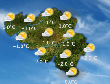 La journée de Noël sera généralement ensoleillée avec toutefois un peu plus de nuages sur l'extrême sud-est du pays. Il fera assez froid avec des maxima autour de 0 degré, sous un vent de nord-est modéré, et encore assez fort à la côte.
