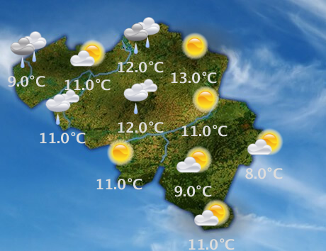Dimanche, nous prévoyons d'abord de larges éclaircies. Dans le courant de la journée, les champs nuageux deviendront plus nombreux avec un ciel alors partiellement à très nuageux, et de faibles pluies sur la moitié nord-ouest du pays. Les maxima se situeront entre 8 et 12°C, sous un vent de sud modéré.
