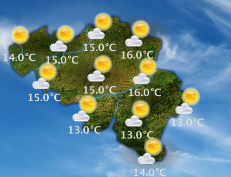 Mardi, le temps restera assez ensoleillé. L'après-midi, des champs nuageux dériveront toutefois sur la moitié est du territoire et pourraient y laisser échapper une petite ondée. Il fera doux avec des maxima de 13 à 16°C, sous un vent faible à modéré de sud à sud-ouest.