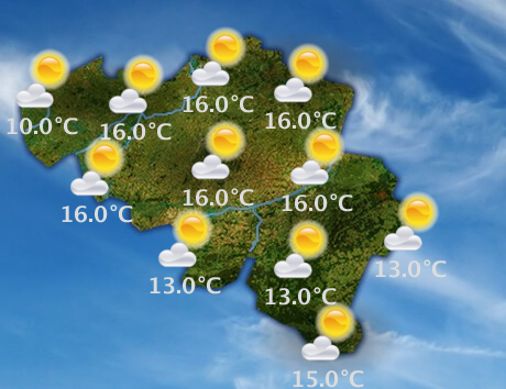 Lundi, le temps sera ensoleillé avec, l'après-midi, quelques champs nuageux inoffensifs. Les maxima seront compris entre 13 et 16°C, sous un vent généralement modéré de secteur sud.