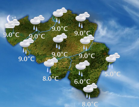 Ce soir et en première partie de nuit, la zone de pluie ondulera temporairement sur le pays et gagnera finalement toutes les régions, à l’exception de l’extrême sud-est qui pourrait conserver des conditions sèches. En milieu de nuit, elle quittera définitivement notre territoire par le nord-est. Le ciel restera toutefois très nuageux avec la possibilité de quelques éclaircies, mais aussi de quelques ondées localisées. Les minima seront compris entre 5 degrés en Hautes-Fagnes et 8 à 9 degrés en plaine. Le vent restera modéré de sud-sud-ouest.